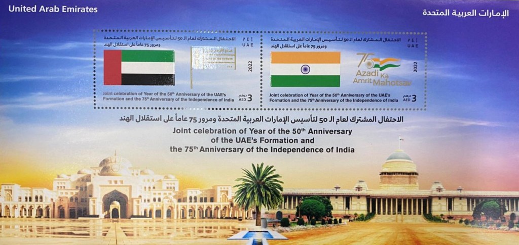 Jaap Sarelse (the Netherlands) just provided a sample of the first day cover of the UAE stamps, dated June 30, 2022. Stamps from this country were supposed to be released at the same date as the Indian counterpart, namely on February 18, 2022. Actually, a long unexplained delay affected the release of this UAE issue. As a consequence, in the catalogue, this joint issue has to be re-attributed the category of Concerted [C] issue and is now filed under [C20220218] instead of [T20220218]. By looking closer it appears that the design of the final UAE product is also slightly different from what was presented in the February 2022 project, in particular regarding the building depicted in the margin of the souvenir sheet. Take a look below on the illustrations to see the differences in lengths and position of texts in the margin (four lines instead of three) but also on building representations and compare them to the issued Indian souvenir sheet. The delay was probably not only due to logistics issues, but also to the agreement needed from India regarding the depicted buildings. In other words, it may be possible that the UAE stamps had to be reprinted due to this design mistake. We do not know if the first design was printed on time and needed to be destroyed. There is a need to dig further and any information is welcome.