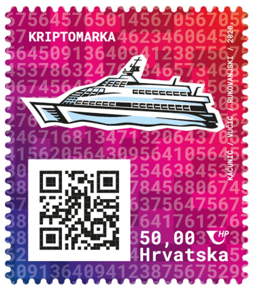 Quite complicated to understand for non-initiated, isn’t it? So let us find more information: PostNL has joined forces with Austrian Post, which developed the first crypto stamp in 2019. Austrian Post has over three years of experience in issuing crypto stamps (10 stamps issued so far). The design of this jointly issued crypto stamp has a unique symbol. Designs for those earlier editions included, for example, the symbols of a unicorn, a whale and a panda and are available in different colors. A Delcampe search of the word “crypto stamp” led already to more than 300 occurences. Actually crypto stamps have been issued by several countries including Croatia, Switzerland, UNO New York, UAE, Liechtenstein or Gibraltar, next to Austria. The first observation is that all these stamps are very expensive (10 to 150€ each) and it seems that one pays for more than the simple postal fee, i.e. this seems to be the price for the combination between a stamp and an artwor.? Here some examples of already issued crypto stamps: