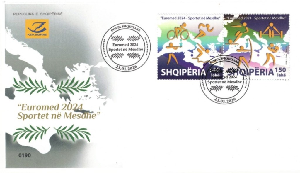 Albania finally also issued the 2024 Euromed stamps with a first day cancellation from January 23, 2026 (!) (information and pictures provided by Enzo Cafaro, Italy). We can now expect to see the 2025 Euromed stamps as well as the 2025 Europa or even the UPU anniversary stamps. There are still no explanations for the more than one year regular delays for all these stamps from this country.