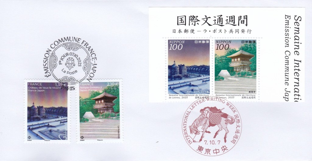 Among more recent issues, Dominique Josse (France) succeeded in creating, not without difficulties, private mixed first day cancellations of the Japan – France joint issue [T20251007]. Thanks a lot, Dominique.