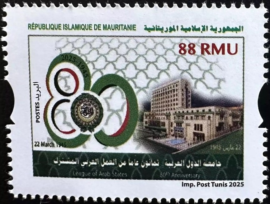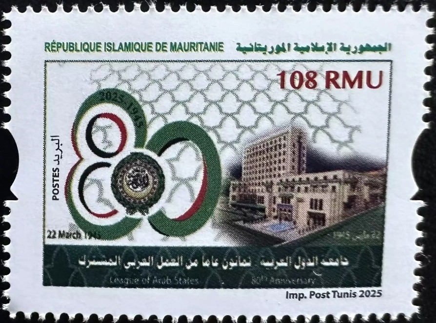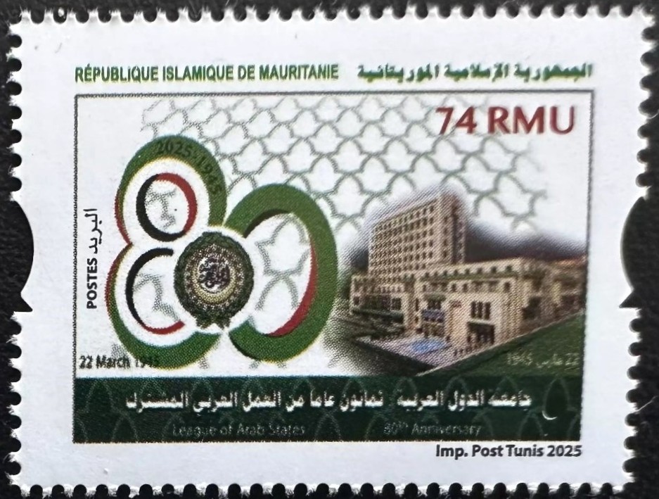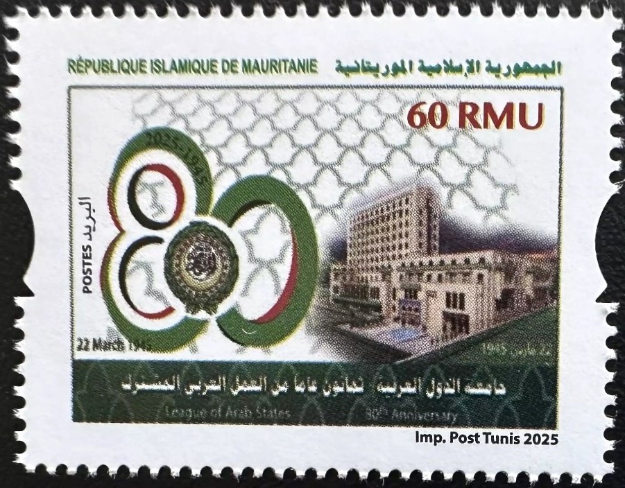 Stamps from Mauritania relative to the UPU 150th anniversary (apparently 4 stamps, only one seen so far – T20241009), and the 80th anniversary of the Arab League (4 stamps – T20250322) became available. Dates of issue are unknown. Only bad quality images are available so far. Note that the currency used on these Mauritanian stamps is wrongly expressed in “RMU” instead of the correct “MRU”, making these issues questionable. Additional information is welcome. At the same time Saudi Arabia issued also two stamps, one related to this same Arab League 80th anniversary (T20250322), but issued one year later, on March 22, 2026, and the other related to the Arab Postal Day (T20250803) and issued on March 14, 2026. Thanks to Kenneth Sequeira, Dubai and Ali Ahmed Med Achour, Algeria, for this information. Source of the Mauritania stamps’ illustrations is Busch Collectibles.