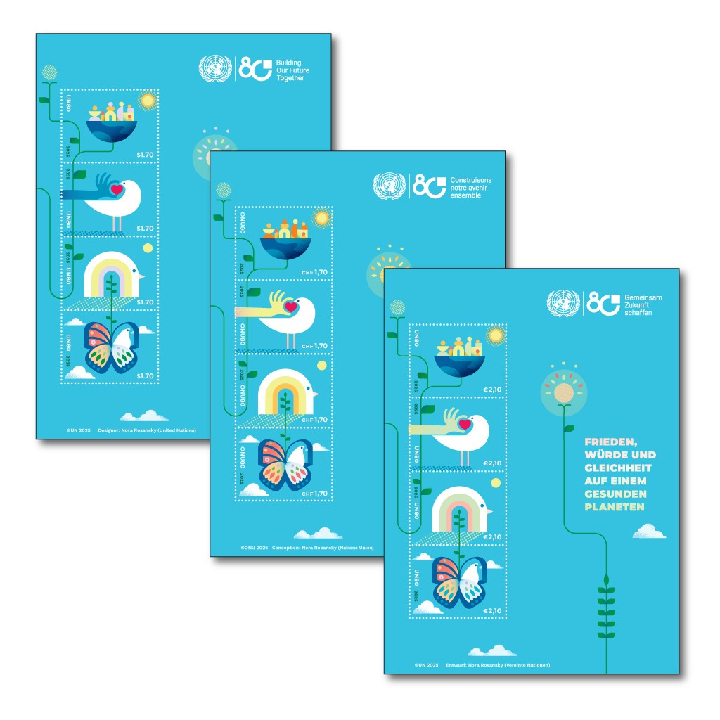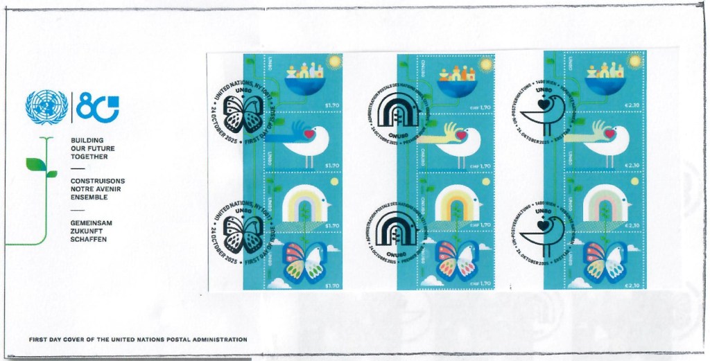 During the year 2025, we also forgot to mention the joint issue between the three United Nations offices of Geneva, New York and Vienna related to the 80th anniversary of the United Nations. As usual, when only these three offices are involved, we cannot consider those stamps as joint, but the catalogue mentions (in italics and gray color) all issues of these offices when design and illustrations are identical. So, we will complete the catalogue with this information (provided by Jaap Sarelse, the Netherlands), but file it under N20251024. Issue date was October 24, 2025 and mixed first day covers were also made available.