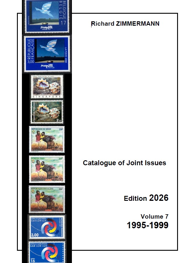 This 1,950+-pages catalogue contains presently (January 2026) over 2,300 entries describing sets of joint/common stamp issues among which more than 1,630 are true joint stamp issues (Unique, Se-tenant, Twin, Concerted or Parallel according to the official definitions). More than 16,500 items (stamps, souvenir sheets, miniature sheets, but also stationary, first day covers or folders) are described and illustrated with more than 9,200 pictures. Eventually, more than 36,000 quotations are provided for these different items.