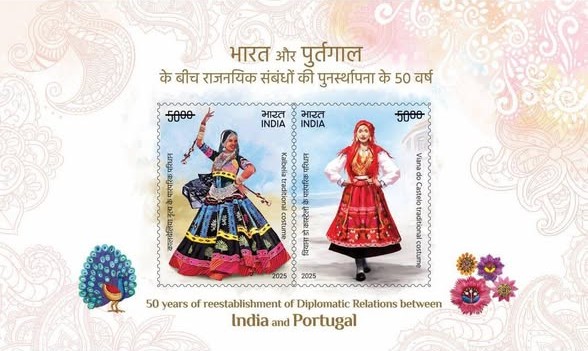 Mongolia and India celebrated on October 14, 2025, the 70th anniversary of their diplomatic relationship with identical souvenir sheets containing two stamps showing the Mongolian Biyelgee dance and the Ramlila theatrical performance (India). The margins show both national flags, the anniversary logo, national animals (horse and elephant), folk arts, Mongolian ger (yurt) and the blue sky (information provided by Kenneth Sequeira, Dubai, and Robert Schrijvers, Mongolia).