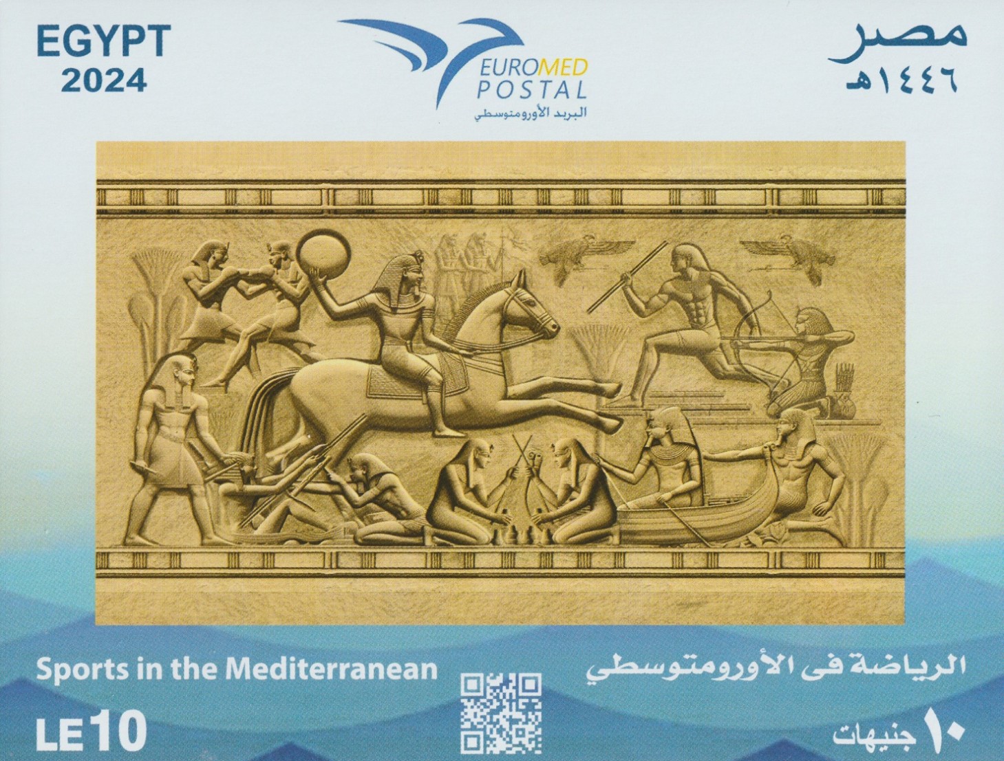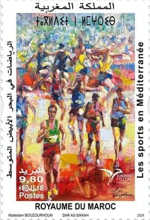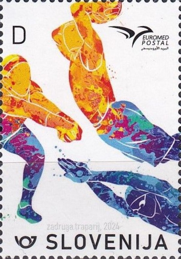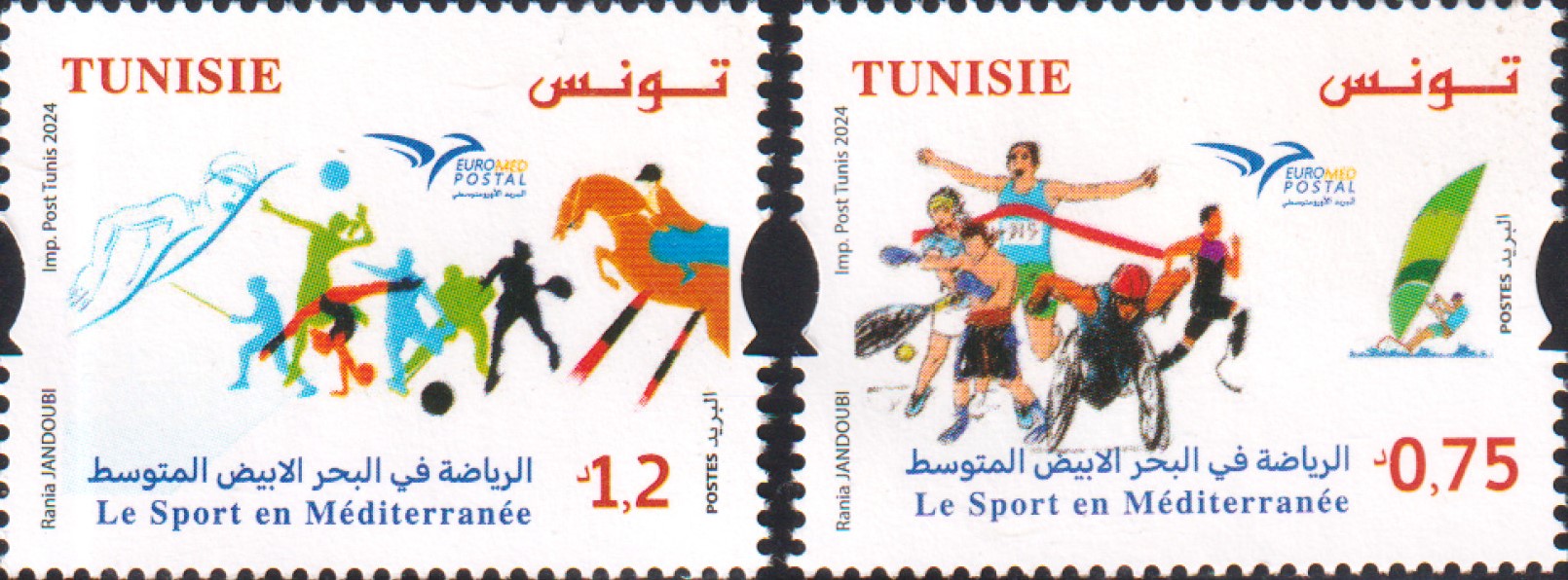The 2024 Euromed issues were released for most of them on July 8, 2024. The following countries have so far released their stamps: Bosnia Herzegovina (July 10, 2024) – Croatia – Cyprus (July 10) – Egypt () – France – Greece – Malta – Montenegro – Morocco – Portugal (July 10) – Slovenia – Spain (July 10) – Tunisia (July 9) and Turkey (July 7). We are expecting other issues from Albania and Jordan. Jordan stamps have not been seen so far, while Albania stamps are always delayed by one year. Topic is Mediterranean sports and illustrations are different. Thanks to Ali Ahmed Med Achour (Algeria), Don Birschel (USA), Jeff Courtright (USA) for having provided details.