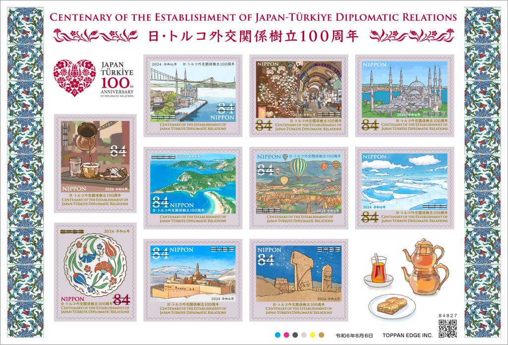The Japan – Turkey joint issue scheduled for August 8, 2024 was released on that date in form of a single stamp for Turkey and a miniature sheet for Japan, with different designs.