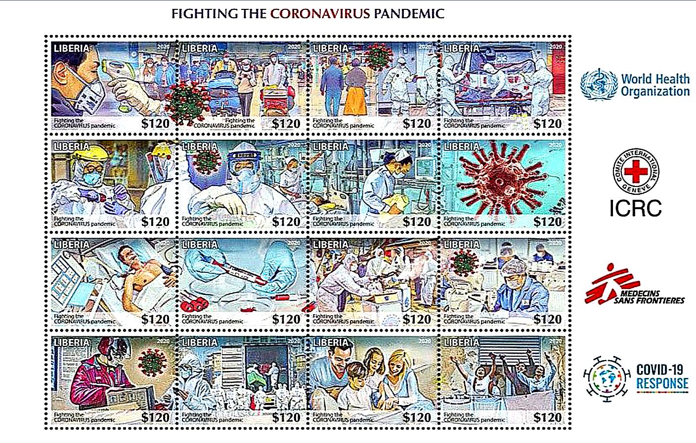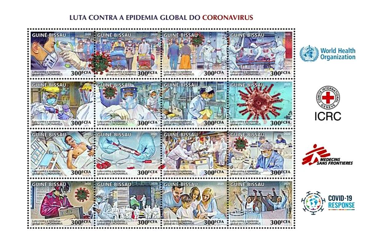 An older series of stamps dedicated to the Covid pandemy was discovered recently (Costas Mengoulis). These stamps produced by Stamperija on behalf of Chad, Guinea-Bissau, Liberia, Niger and Sao Tome and Principe have not been reported so far, and their exact date of issue remains unknown. Each country proposes a pane with 16 different stamps, identical from one country to another. Knowing the source and the reason of this issue (mainly to fool collectors), we do not recommend to buy and to include them in your collection. However they need to be reported in the catalogue, but without details, with the same purchase recommendations. In absence of details, these stamps have been added to the description of [B20200427].
