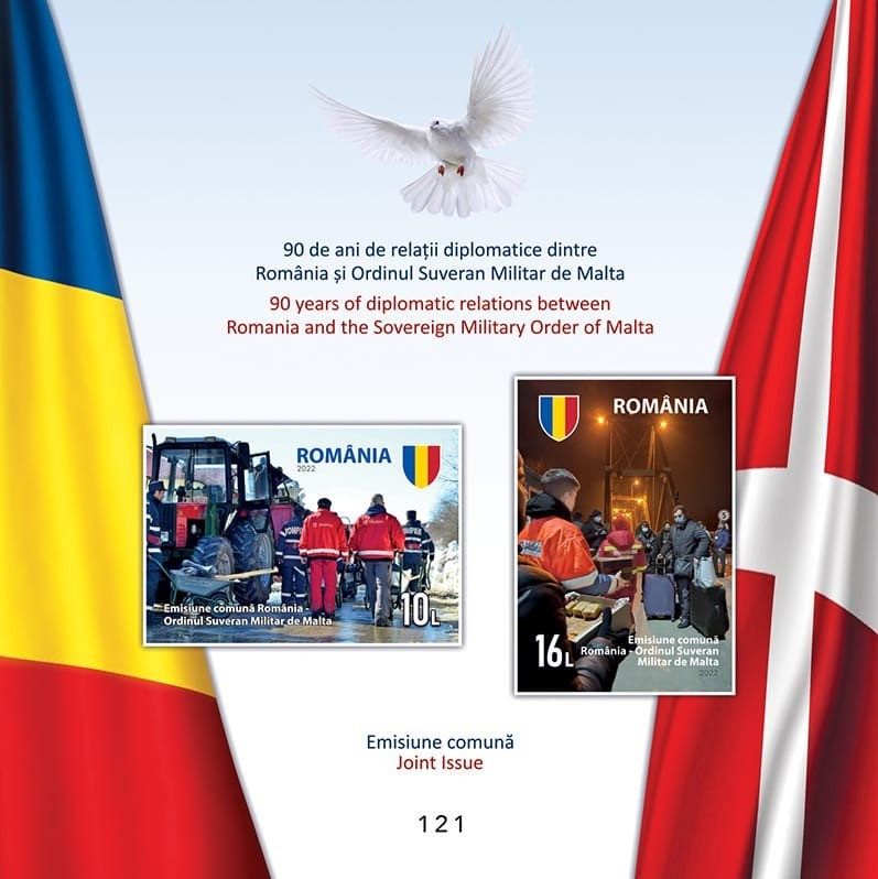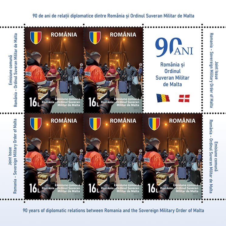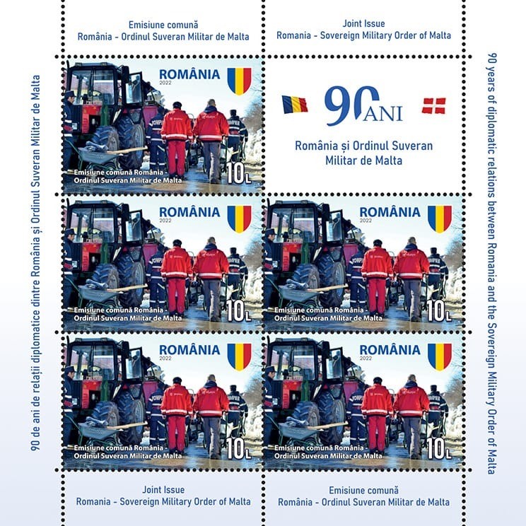 With one stamp representing firefighters in action, removing snow, and the other one showing Ukrainian refugees arriving in Romania and welcomed by local volunteers, Romania and the Sovereign Military Order of Malta (SMOM) celebrated on September 16, 2022, 90 years of relationship. SMOM conducts diplomatic relations with 112 countries, among which Romania, and the European Union and its stamps are recognized by 57 postal administrations. However, for example, SMOM does not have bilateral diplomatic relationship with China, or the United States.