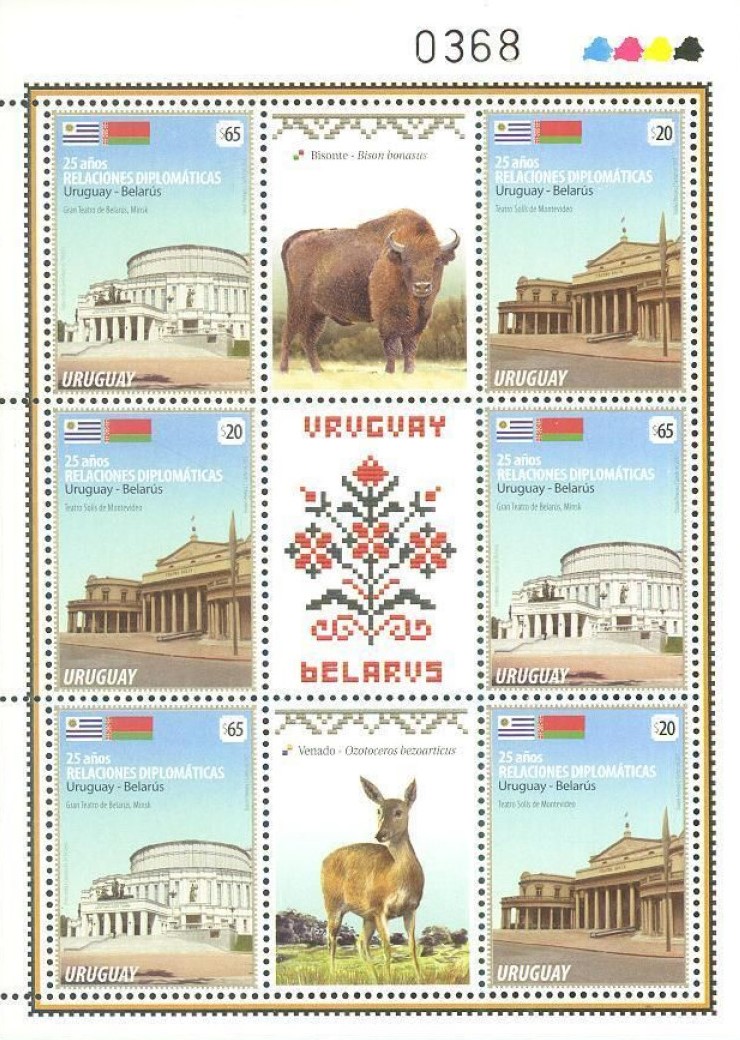 On December 5, 2025, Uruguay and Romania issued joint stamps at the occasion of the 90th anniversary of their diplomatic relations establishment. The commonly accepted topic was horse breeding illustrated by two stamps showing the Romanian Lipizzan horse and the South American Criollo horse. The Uruguayan stamps have not been seen so far, but their issue confirmed by an announcement describing a se-tenant pair of stamps printed at 2,500 samples in miniature sheets of 4 pairs (so, only 625 miniature sheets available). At the other end, Romania is still complicated in terms of proposing different sub-types and their limited number of prints. In this country the following items are available: the two stamps, issued in panes of 32, within which the next to last row is printed upside down to allow creating tête-bêche samples (printed 2×5,472 stamps, i.e., 2×171 sheets only – a part was taken to create first day covers), 2 miniature sheets with 3 stamps and one label at the top right position (122×91 mm – printed 2×1,550 miniature sheets), one illustrated souvenir sheet with a pair of non se-tenant stamps (120×164 mm – printed 3,150) and another illustrated souvenir sheet with the non-se-tenant stamps, same size, but imperforate and numbered, available only in a folder produced at 277 (!) samples.