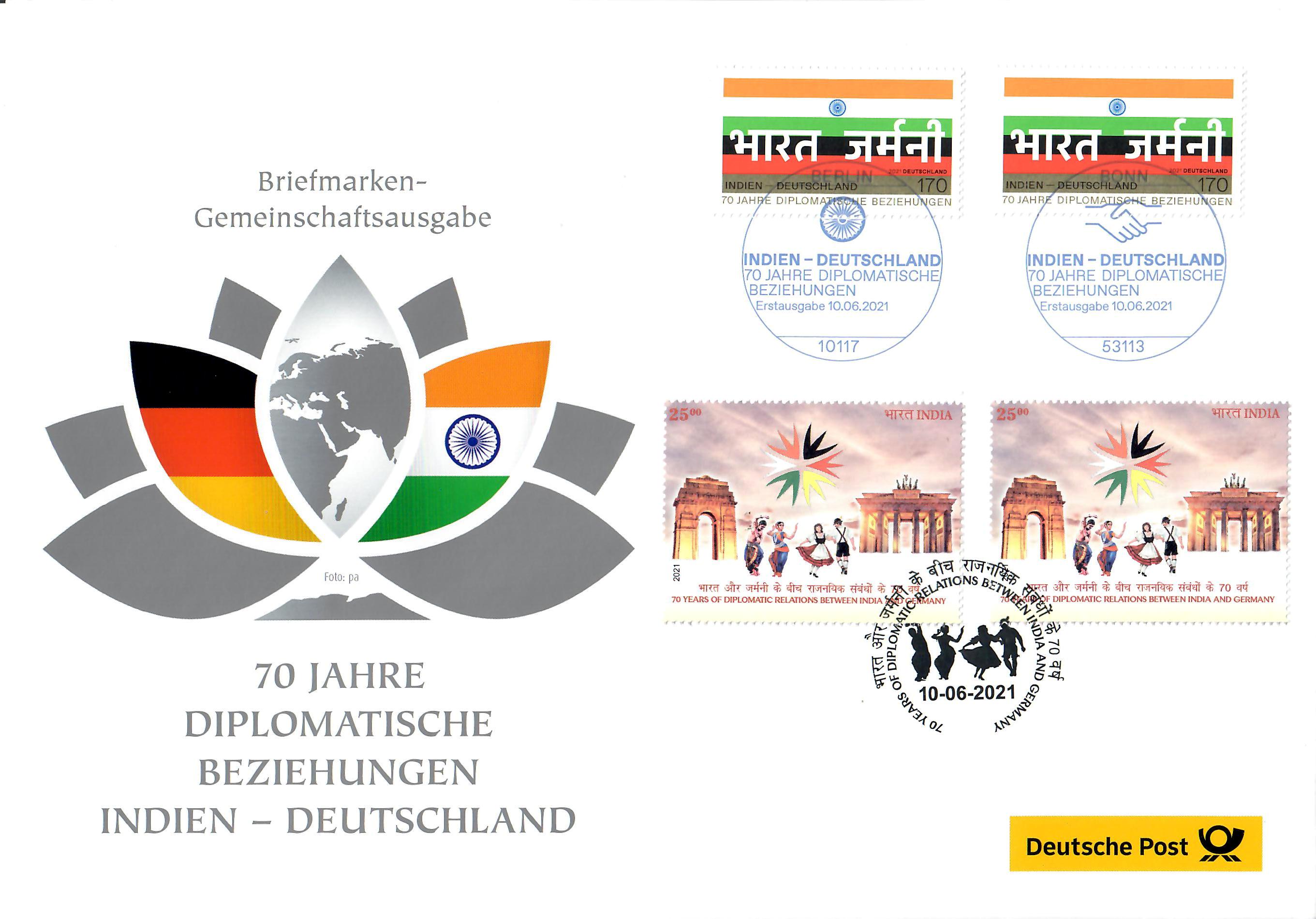The same modification affected the stamps issued on October 16, 2023, involving Vietnam and India. Small amounts of Vietnam stamps became available at one post office at the original day of issue (April 28, 2023), but stamps were retrieved after sale of the first batch of 4,000 units. India announced three times the release of their stamps until they became eventually available on October 16, 2023. These delays led to consider initially this series as Concerted. However, the mixed FDC of this issue is cancelled with dates from October 16, 2023 for both countries and therefore these stamps are filed as twin [T20231016]. Covers with Vietnamese stamps cancelled before October 16, 2023 are rarities.
