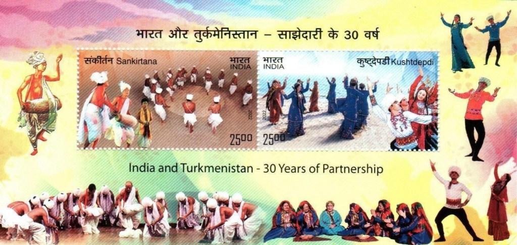 Mongolia and India celebrated on October 14, 2025, the 70th anniversary of their diplomatic relationship with identical souvenir sheets containing two stamps showing the Mongolian Biyelgee dance and the Ramlila theatrical performance (India). The margins show both national flags, the anniversary logo, national animals (horse and elephant), folk arts, Mongolian ger (yurt) and the blue sky (information provided by Kenneth Sequeira, Dubai, and Robert Schrijvers, Mongolia).