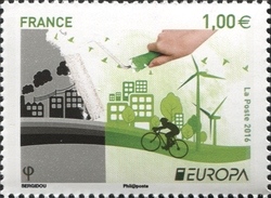 From 1974 on, all stamps issued by the European countries were produced at different dates and only the topic was defined. In 1984, one identical design (the European bridge) was accepted, but issue dates remained spread over 10 months. The situation was similar in 2000 and 2016, when identical design stamps were produced as Europa-CEPT (PostEurop) stamps for these years. So, Europa is not anymore a joint stamp issue, with the exception of years during which the different countries agree on a common design. As a few countries issue their stamp at the same date (usually around May 9 of the year), such a series can even be considered as a twin stamp issue.